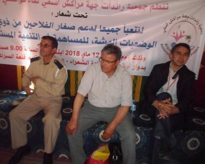 في إطار انفتاحها عن محيطها الخارجي، وتماشيا مع أهدافها في خدمة التنمية المستدامة ، نظمت جمعية رائدات جهة مراكش آسفي، لقاءا تأطيريا وتواصليا بمدينة العطاوية في إقليم قلعة السراغنة، تحت شعار : من أجل وضع صغار الفلاحين من ذوي الوضعيات الهشة، على سكة تحقيق التنمية المستدامة ، يؤطره مجموعة من الجامعيين والخبراء المختصين في المجال الفلاحي لفائدة صغار الفلاحين، وأطر من المكتب الجهوي للاستثمار الفلاحي للحوز، ومنتخبين وفعاليات جمعوية قصد المساهمة في عصرنة القطاع الفلاحي، وحسن تدبيره من طرف الفئة المستهدفة ، وتأهيلهم قصد المشاركة في مستقبل القطاع الفلاحي بالمغرب، تماشيا مع إطار مخطط المغرب الأخضر. وتشجيع صغار الفلاحين على تكثيف اللجوء إلى النموذج البيئي التدبيري في أنشطتهم الفلاحية وتجديدها.