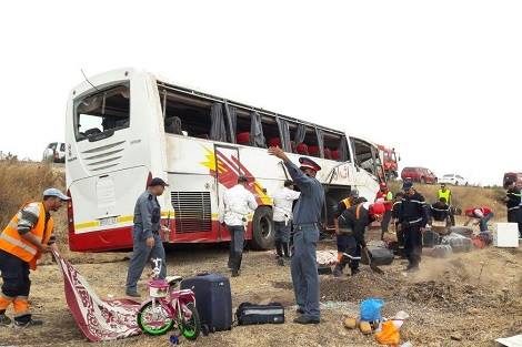 أدى إنزياح حافلة لنقل المسافرين قبل ساعات من صببيحة اليوم السبت 1 شتنبر الحالي عن مسارها، إلى حادث نجم عنه قتلى وجرحى .