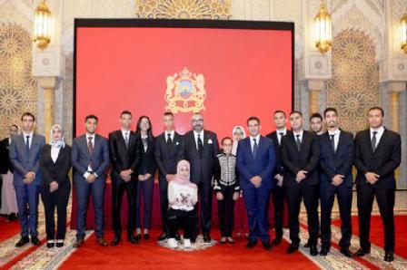 بعد ذلك، تقدم للسلام على جلالته 12 تلميذا من المتدربين والطلبة، المتوجين برسم الموسم الدراسي 2017 – 2018 ، قبل أن يوشح جلالته بأوسمة ملكية 18 أستاذا وإطارا تربويا بوزارة التربية الوطنية والتكوين المهني والتعليم العالي والبحث العلمي، تم اختيارهم من بين الأفضل على مستوى مختلف جهات المملكة.