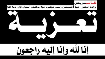 إنتقلت إلى عفو الله ومغفرته مساء اليوم الأربعاء 19 شتنبر، والدة الدكتور أحمد اخشيشن رئيس مجلس جهة مراكش أسفي، وذلكـ بإحدى المصحات الخاصة بمدينة قلعة السراغنةبعد صراع طويل مع المرض،حيث سيوارى جثمان الفقيدة بمدينة ميسور، وبهذه المناسبة الأليمة تتقدم إدارة جريدة “هاسبريس” وطاقمها التحريري، والتقني، وكل الزملاء والزميلات بنادي الصحافة بجهة مراكش آسفي، إلى الدكتور أحمد أخشيشن وإلى كل من أبناء وبنات وذوي الفقيدة وأرحامها، بأبلغ عبارات التعازي، وأصدق مشاعر المواساة ، راجين من الله عز وجل أن يلهمهم الصبر و السلوان و أن يمطر شآبيب رحمته وعفوه عليها، وأن يحشرها في مغفرته الواسعة،الفيحاء ويبعثها اللهم أحسن مقام مع النبيئين والصديقين والشهداء والصالحين وحسن أولائك رفيقا ويلهم ذويها الصبر والسلوان .