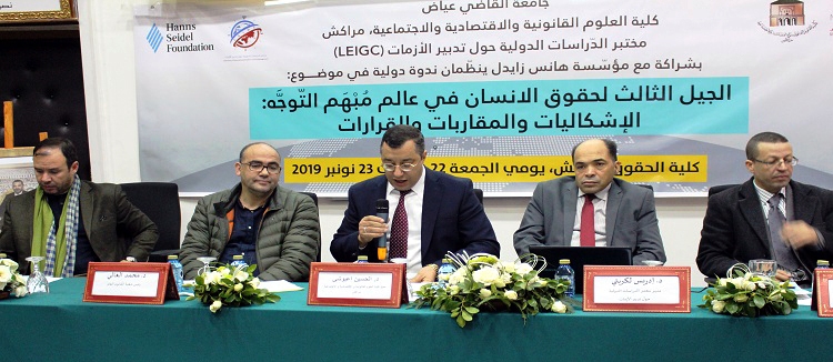 شكل موضوع “الجيل الثالث لحقوق الانسان في عالم مبهم التوجه.. الإشكاليات والمقاربات والقرارات”،محور ندوة انطلقت أمس الجمعة 22 بمراكش، من تنظيم مختبر الدراسات الدولية التابع لكلية العلوم القانونية والاقتصادية والاجتماعية بجامعة القاضي عياض في مراكش، بشراكة مع مؤسسة “هانس زايدل” مشاركة خبراء وأكاديميين وباحثين من المغرب وتونس والجزائر وموريتانيا وروسيا، بالإضافة إلى مصر وسلطنة عمان وجمهورية تشيكيا، حيث أجمع الحاضرون من المتدخلين على أن الموضوع يكتسي أهمية كبرى نظرا للإشكالات المثارة بهذا الخصوص في سياق التوجهات العالمية المعاصرة ومدى علاقة الموضوع بـ “عولمة حقوق الإنسان ومبدأ السيادة الإقليمية”، و”الحق فـــى التنمية المستدامة بين الشمال والجنوب وضرورات الحوار العالمي”، و”فلسفة التنمية المستدامة وحقوق الأجيال القادمة”.