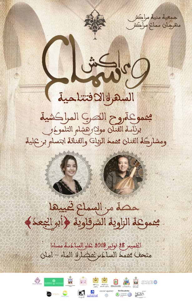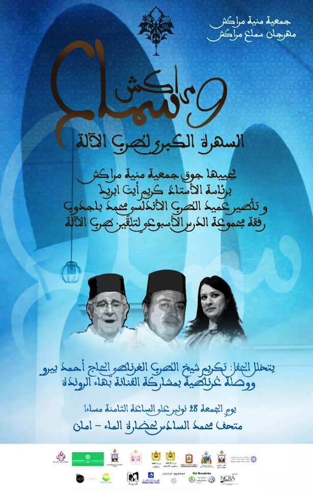 تميزت فعاليات الدورة التاسعة من سماع مراكش للقاءات والموسيقى الصوفية، التي تشرف على تنظيمها جمعية منية مراكش لإحياء تراث المغرب وصيانته خلال الفترة الممتدة منذ يوم 28 نونبر الجاري إلى اليوم فاتح دجنبر الحالي بشراكة مع المجلس الجماعي لمدينة مراكش ومجلس عمالة المدينة، ومجموعة من المؤسسات الوطنية، بمشاركة عمدة الطرب الأندلسي الحاج محمد باجدوب، الذي شكل رفقة المصاحبة النغمية لجوق جمعية المنية، برئاسة العازف الموسيقي كريم أيت أبريكـ نبضة قلب الدورة المذكورة.