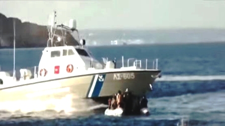 العالم يُتابع ضُباط خَفر سواحل يونانيين،حاولوا قلب زورق مهاجرين