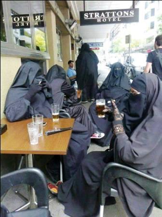 محجبات يحتسين الخمر على قارعة شوارع المدن الأوروبية