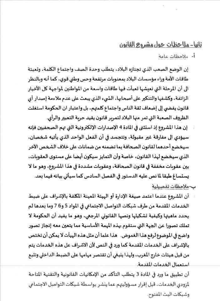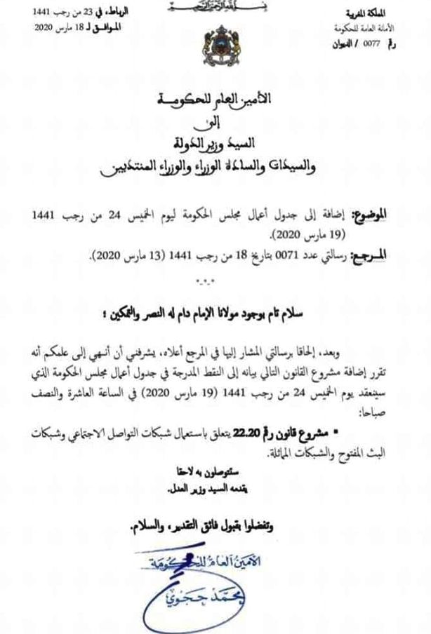 هذا، وتداول نشطاء مواقع التواصل الإجتماعي صورة من جزء وثيقة مسربة من مسودة مشروع قانون رقم 22.20،الذي جرت المصادقة عليه، وسط تكتم حكومي شديد على نطاق واسع على منصات التواصل الاجتماعي بالمغرب، والتي أثارت مضامينها جدلا واسعا، حيث خرج عدد من النشطاء والإعلاميين عن صمتهم وانتقدوا بلغة شديدة اللهجة حكومة سعد العثماني، واعتبروا أنها تستغل ظرفية حساسة حيث الكل منشغل بمحنة كورونا، من أجل تمرير قانون من هذا الحجم دون أي مشاورة أو نقاش مع مختلف الفاعلين، والتي كشفت مضامينه عن مواد خطيرة وصفوها بمحاولات التضييق على حرية التعبير.