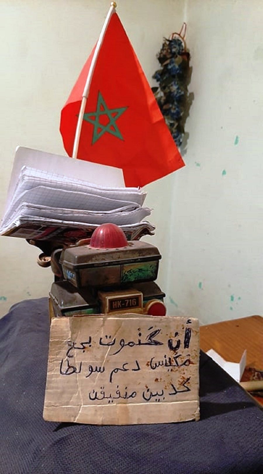 وترك الهالك، حسب الصورة المتداولة، رسالته وبجانبها العلم المغربي وبعض الكتب وأشياء تبدو متهالكة، مما يوضح أنه كان يعيش وضعية هشة، وجد فقيرة.