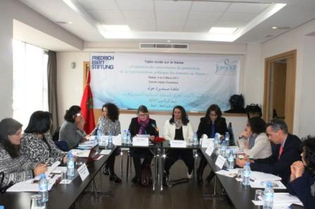 نظمت جمعية جسور ملتقى النساء المغربيات مائدة مستديرة مؤخرا بالرباط ، وذلكـ بشراكة مع مؤسسة فريدريش إيبرت بمناسبة اليوم العالمي للمرأة الذي يحتفى به كل 8 مارس وفي إطار دراسة تشاركية اطلقتها تناولت ” تقييم آليات تعزيز التمثيلية السياسية للنساء في المغرب “، جمعت المائدة المستديرة المنظمة بالرباط بين منتخبين ومستشارين واطر سياسية وجمعوية و باحثين ومراقبين من مختلف جهات المملكة.وسوف تؤخذ تجارييهم الشخصية وخبراتهم ومهاراتهم ووجهات نظرهم في اطار تقييم مختلف الآليات و فهم العقبات والممارسات والمقاومات وكذا في التفكير في تدابير انتخابية ومأسسة جديدة وناجعة تدخل في اطار التكافؤ السياسي الذي ينص عليه دستور 2011، حيث ثمنت أميمة عاشور، رئيسة جمعية جسور ملتقى النساء المغربيات, مؤسسة فريدريش إيبرت التي تقوم بمجهودات جبارة من اجل مرافقة عدة مشاريع في منطقة الشرق الأوسط و شمال أفريقيا في مجال الديمقراطية والعدالة الاجتماعية للنساء والشباب.