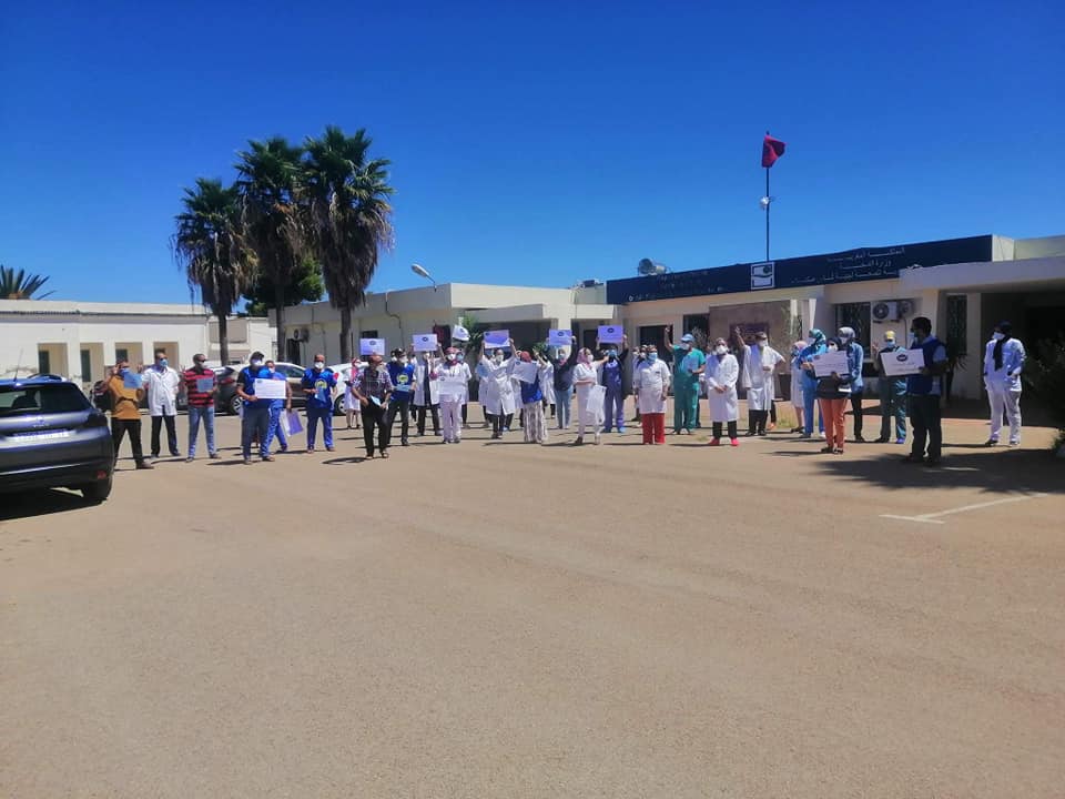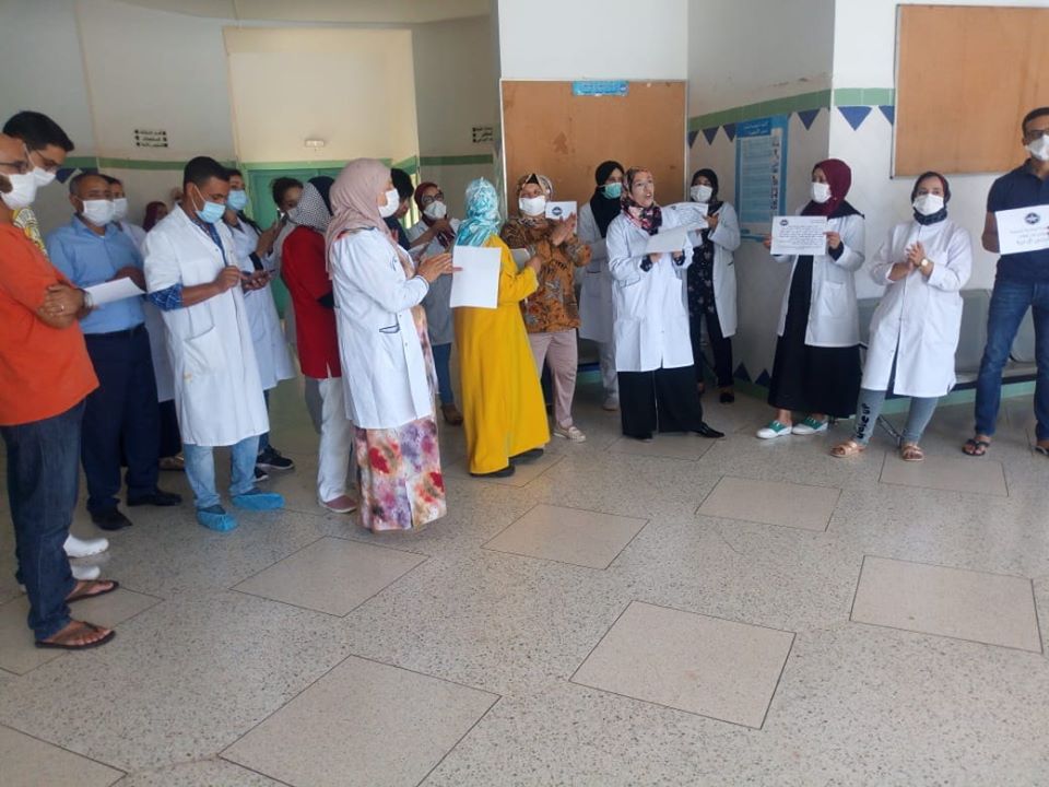 هذا، وجدد المحتجون المطالبة بتوفير الحماية للأطر الصحية والتضامن مع كل العاملين في القطاع ضحايا وباء كورونا، إذ يخضع أكثر من120 منهم للاستشفاء حاليا، والتعبير عن مساندتهم،والمطالبة بالعناية بهم والتصريح بهم كضحايا حوادث شغل،وتصنيف الإصابة بالوباء ضمن لائحة الأمراض المهنية، وتجديد المطالبة بالإفراج عن التعويض الخاص بكورونا لفائدة أطر الصحة، وتأكيد المطالبة بإقرار خصوصية قطاع الصحة بسن تدابير قانونية ومالية تروم النهوض به ليكون في مستوى حاجيات وتطلعات المجتمع والعاملين في القطاع، والكف عن اعتماد خصوصية القطاع فقط في القرارات المعاكسة لحقوق وسلامة وكرامة الأطر الصحية.