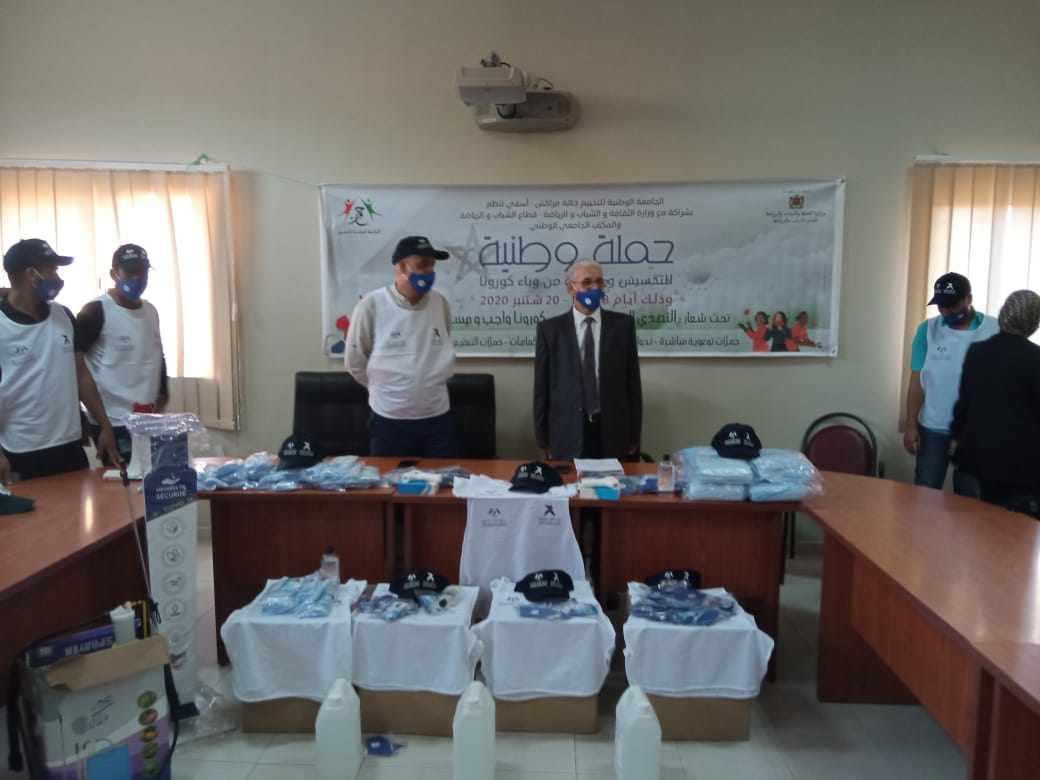 اعطى المدير الجهوي لقطاع الشباب و الرياضة بجهة مراكش اسفي رفقة عادل نيزار رئيس المكتب الجهوي للجامعة الوطنية للتخيم الجمعة الفارطة 18شتنبر الانطلاقة الرسمية للحملة التحسيسة و التوعوية باخطار و تداعيات وباء كورونا المستجد، وذلكــ بمقر المديرية بمراكش، بحضور ممثل السلطة المحلية و ممثل المديرية الجهوية للصحة بمراكش و مختلف مكونات المكتب الجهوي المدكور و ممثلي بعض المنابر الاعلامية المحلية.