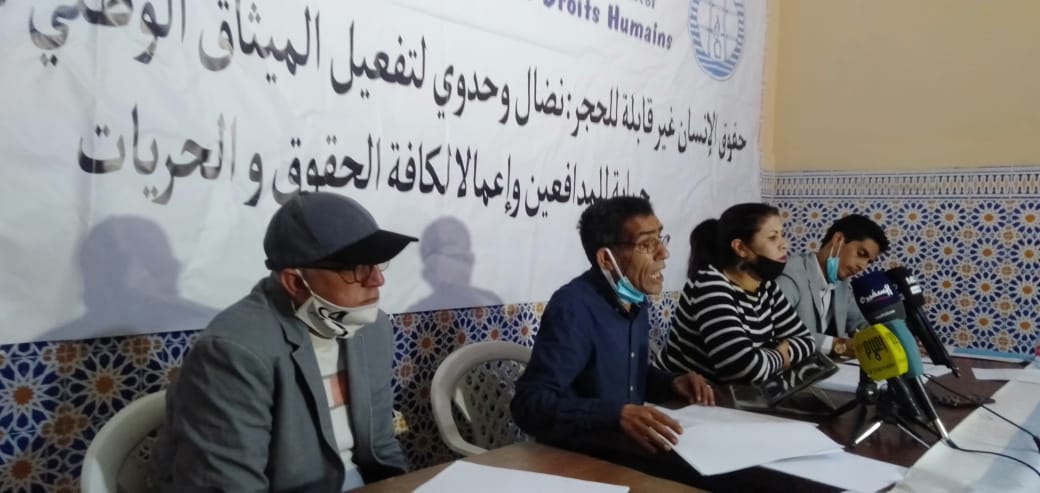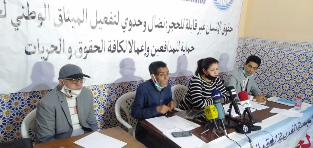 كشف فرع المنارة مراكش للجمعية المغربية لحقوق الانسان، الذي ترأسه الحقوقية عواطف أتريعي، أن وضعية حقوق الإنسان خلال سنة 2020 التي إعتبرها ذات الفرع في بلاغ صحافي، نشره خلال ندوة صحافية إنعقدت بمقر الفرع،كمرحلة عصيبة على الانسانية ، نتيجة حالة الطوارئ الصحية التي لازالت مستمرة ببلادنا منذ 20 مارس من السنة الفارطة 2020، اتسمت بانتهاكات مست في مجملها جميع مجالات حقوق الإنسان.