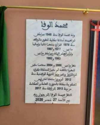اشرف السعيد امزازي وزير التربية الوطنية والتكوين المهني والتعليم العالي والبحث العلمي مرفوقا بمولاي أحمد الكريمي مدير الأكاديمية الجهوية للتربية والتكوين لجهة مراكش آسفي بعد زوال يوم امس الجمعة 26 مارس الجاري، ومجموعة من المسؤولين التربويين وبحضور العديد من الفعاليات الثقافية والجمعوية على اطلاق اسم الراحل محمد الوفا وزير التربية الوطنية الاسبق والقيادي الاستقلالي السابق على مؤسسة تعليمية متواجدة بحي الجبل الأخضر، على مقربة من شارع فاطمة الزهراء، بمنطقة الرميلة في مراكش العتيقة، في أجواء طبعتها بصمات مميزة و تكريم مستحق لشخصية ساهمت في تطوير المشهد التربوي وتحديث المناحي التعليمية المغربية، وحظيت بمكانة كبيرة في قلوب المغاربة؛ الراحل محمد الوفا من ضمن ايقونات تدبير الشأن المحلي بمدينة مراكش، وقيادي سياسي وديبلوماسي مميز، تمكن من وسم تاريخ المغرب المعاصر بالكثير من الإشراقات والمبادرات المحلية والوطنية والدولية، وأن وسم مؤسسة تعليمية بإسمه يشكل اعترافا رمزيا وإستمرارية في صناعة الامل والوثوق بالمستقبل الواعد .