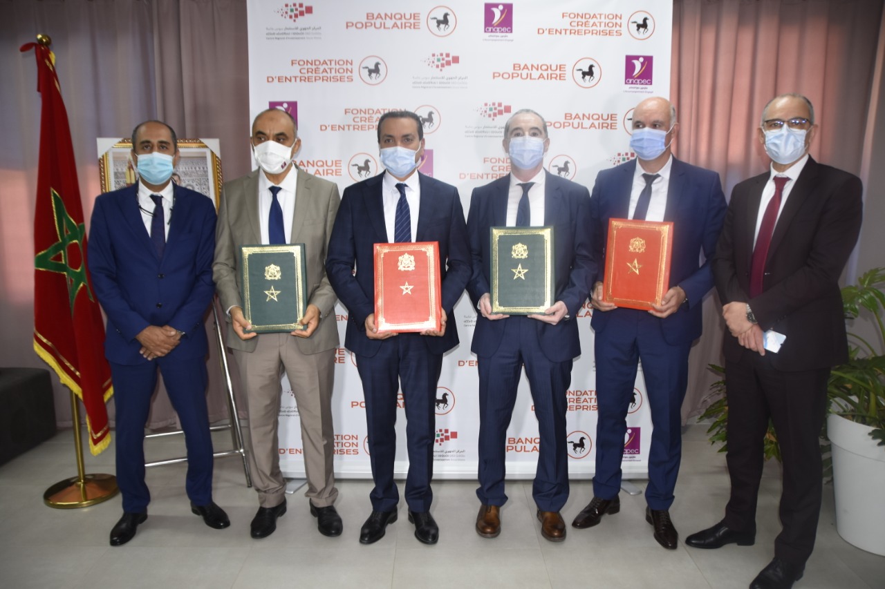 في إطار الاستمرار في تنزيل التوجيهات الملكية السامية الرامية إلى مواكبة المبادرات المقاولاتية، نظم المركز الجهوي للاستثمار سوس ماسة و الوكالة الوطنية لإنعاش التشغيل و الكفاءات، ومؤسسة البنك الشعبي لإنشاء المقاولات و البنك الشعبي الجهوي وسط جنوب بشراكة مع وزارة الشغل والادماج المهني مراسيم توقيع اتفاقية للشراكة يوم 31 ماي 2021 بمدينة الابتكار بآكادير، وذلك بهدف تنزيل برنامج مندمج للمواكبة تحت مسمى “إنتعاش”.