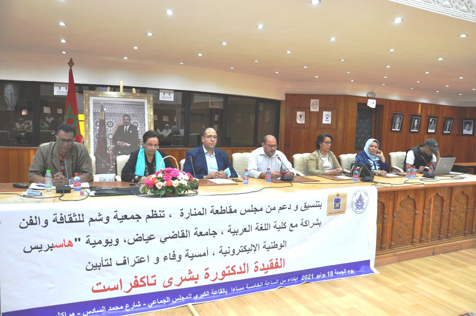 نظمت جمعية وشم للثقافة والفن، بدعم من مجلس المنارة بمراكش، وبتنسيق مع يومية “هاسبريس” الإليكترونية، وكلية اللغة العربية، التابعة لجامعة القاضي عياض بمراكش، حفل تأبين الدكتورة بشرى تاكفراست، أستاذة النقد الأدبي بذات الكلية المذكورة.، وذلكــ ، بحضور نجلتي الفقيدة الطالبة الطبيبة إشتياق ، والطالبة المهندسة مهجة، وزوجها قيد حياتها ووالدتها، وشقيقتيها ونائب رئيس مجلس مقاطعة المنارة المفوض له بتدبير الشؤون الثقافية ، وبعض المنتخبين بالمجالس المحلية والغرف المهنية، وزملاء وزميلات الفقيدة من الأساتذة الجامعيين، والأطر الجامعية والدوائر الثقافية، والمنتديات الأدبية، والمنابر الإعلامية، والأوساط الأكاديمية، والجهات الفنية من مختلف الفنون التعبيرية والتشكيلية، والطلبة، وفعاليات من فنون تقوية الذات.