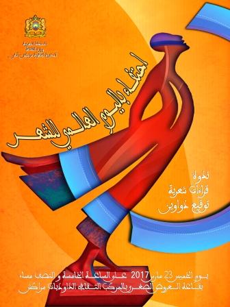 احتفاء باليوم العالمي للشعر تنظم المديرية الجهوية للثقافة ، غدا الخميس 23 مارس الحالي ابتداء من الساعة 5 والنصف مساء بالقاعة الصغرى في المركب الثقافي الداوديات بمراكش، يوما احتفاليا بالشعرو الشعراء.