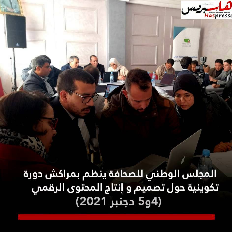 حول موضوع “تصميم وإنتاج المحتوى الرقمي“، نظم المجلس الوطني للصحافة على مدى يومين السبت والأحد 4 و5 دجنبر الجاري بمراكش، دورة تكوينية تفاعلية حضورية لفائدة 40 صحافية وصحافيا من المهنيين العاملين بالمنابر الاعلامية بجهة مراكش أسفي.