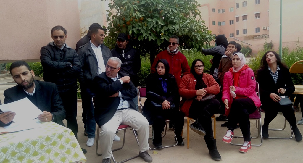 إنعقد الجمع العام التأسيسي لجمعية أمهات وأباء وأولياء تلاميذ مدرسة الشابي للتعليم الأولي و الابتدائي بمراكش،صبيحة يوم الأحد الفارط 19دجنبر الجاري والذي عرف حضورا مكثفا لأمهات وأباء وأولياء التلاميذ المسجلين بالمؤسسة ، حيث افتتح الجمع العام بآيات بينات من الذكر الحكيم، وبعد ذلك تناولت اللجنة التحضرية الكلمة لاعطاء نبذة عن الفصول والقوانين التي تنبني عليها الجمعية واهدافها، وبعد تلاوة القانون الأساسي للجمعية والمصادقة عليه إنتخب المكتب على الشكل الأتي : .1 الرئيس : مصطفى ضرقاوي النواب : هشام حمامي وسحر الصهصهوي . .2 الكاتبة العامة: فاطمة بلبركي . النواب: غزلان عطيفي وعائشة كزر. .3 أمينة المال: حــنان التــاجــر. النواب: محمد أيوب القاتوري و محمد يزيدي. .4 مستشارون: عبد الواحد الراجيفي، ومولاي احمد الشهيبات،عبد الغني البرناطي ودينا بحري .