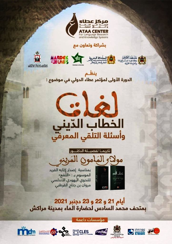 تحت عنوان “لغات الخطاب الديني وأسئلة التلقي المعرفي”نظم مركز عطاء للبحث في اللغة وأنساق المعرفة، مؤتمره الأول على مدار أيام 21، 22و23 دجنبر بمتحف محمد السادس لحضارة الماء بمدينة مراكش، تكريما للدكتور مولاي المامون المريني أستاذ العبرية ومقارنة الأديان،وذلكـ، بمناسبة إصدار كتابه “اللُّمَع” للنحوي الأندلسي أبو الوليد مروان بن جناح القرطبي، 2021، في إطار التنزيل الاستراتيجي لأهدافه العلمية.