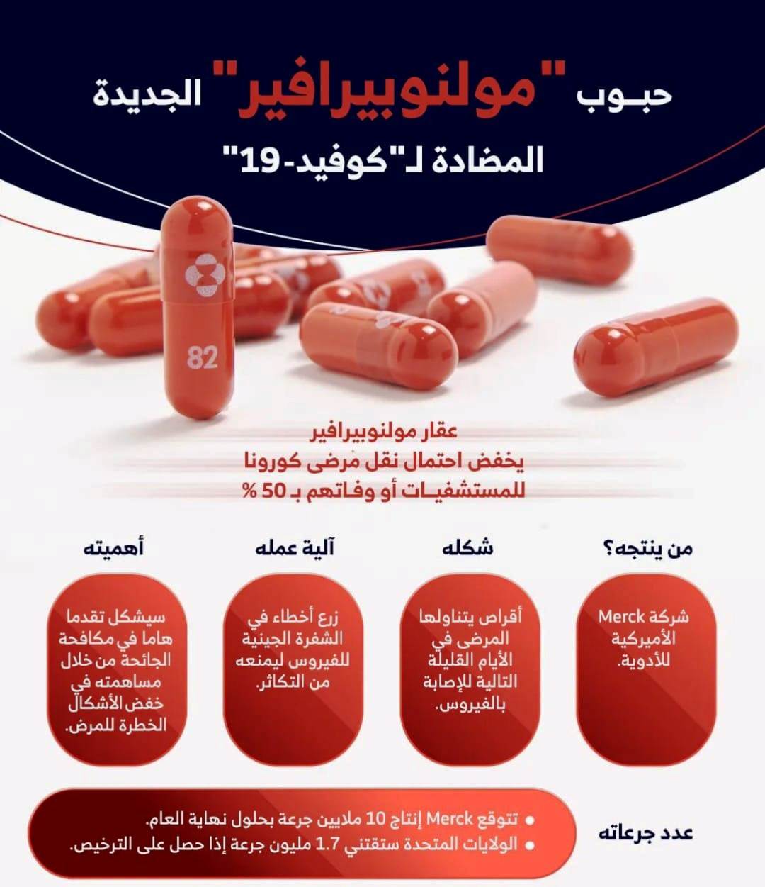 بعد إعطاء السلطات الصحية المغربية الضوء الأخضر لاستعمال عقار “مولنوبيرافير” المضاد لفيروس كوفيد 19، الذي تنتجه مختبرات “ميرك” الأمريكية، توصلت المملكة بـ 30 ألف علبة من هذا العقار الحيوي في انتظار التوصل بـ 30 ألف علبة أخرى في نهاية الشهر الجاري.