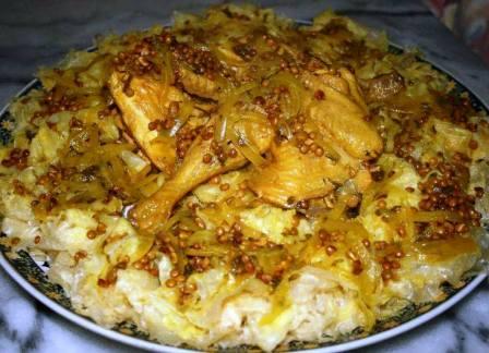 وتحتل أطباق أنواع الدجاج الحيز الرئيسي في مائدة ليلة النصف من شهر رمضان، ليس فقط داخل العائلات المغربية فقط، وإنما على مستوى إعداد الوجبات المخصصة للصدقات على المساكين والفقراء ممن يعتكفون ويجاورون بالمساجد والزوايا وبباحات أضرحة الأولياء والأقطاب بالأحياء المغربية في المدن العريقة،حيث عادة ما يقدم الدجاج فى أواني الكسكس كعادة تأصل عليها الشعب المغربى، عبر مختلف العصور، في حين يتفنن المغاربة بمدن وواحات الأقاليم الجنوبية فى المغرب فى أعداد أطباق هذه الليلة بلحوم الإبل المشوية والمطبوخة الممزوجة بعبق توابل الثريد “الرفيسة” بالتمر والقديد، والتي عادة ما تنافس حضور الدجاج .