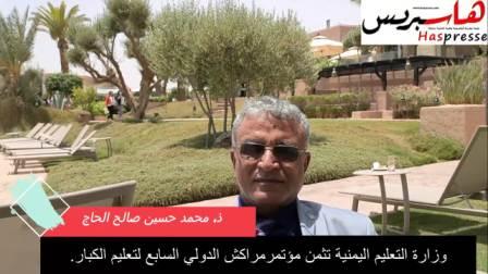 إلى ذلكــ ، هنأ صالح الحاج، المغرب والمغاربة على تنظيم المؤتمر العالمي،وكون المملكة المغربية حظيت بهذا الشرف كأول بلد عربي وإفريقي منذ سبعين عام،مشيرا أن معدل الأمية في اليمن وحسب إحصائيات اليونيسكو، سجلت 42 في المئة، في سنة 2014 ، وأن مايربو على 62 في المئة من النساء اليمنيات أميات، لايقرأن ولا يكتبن، وهن يعشن تحديات القرن الواحد والعشرين، مما إعتبره معدلا كبيرا جدا،زادت من تعقيده الأزمة السياسية التي يتخبط فيها اليمن، مشيرا إلى أن إحدى التنظيمات السياسية المعارضة في اليمن، كانت قد رفعت شعار” لادراسة ولا تدريس حتى يسقط الرئيس”، مما أدى إلى إغلاق عدد كبير من المدارس، والمؤسسات التعليمية،غير أن هذه المدارس عادت إلى نشاطها السابق، نتيجة عزم دولة اليمن على تجفيف منابع الأمية.