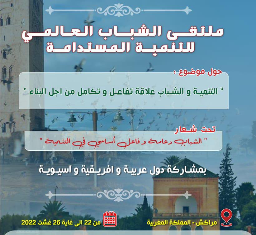 تحت شعار” الشباب دعامة و فاعل أساسي في التنمية”، تنظم الجمعية المغربية مبادرة بمدينة العيون، بشراكة مع ملتقى الشباب العالمي للتنمية المستدامة،والفرع الجهوي للفيدرالية المغربية لناشري الصحف بجهة مراكش آسفي، وولاية الجهة المعنية، وشركاء آخرون، حول موضوع :” التنمية و الشباب علاقة تفاعل و تكامل من أجل البناء”من خلال قراءة في التجارب الشبابية،وذلك صبيحة الأربعاء المقبل 24 غشت الجاري بمدينة مراكش.