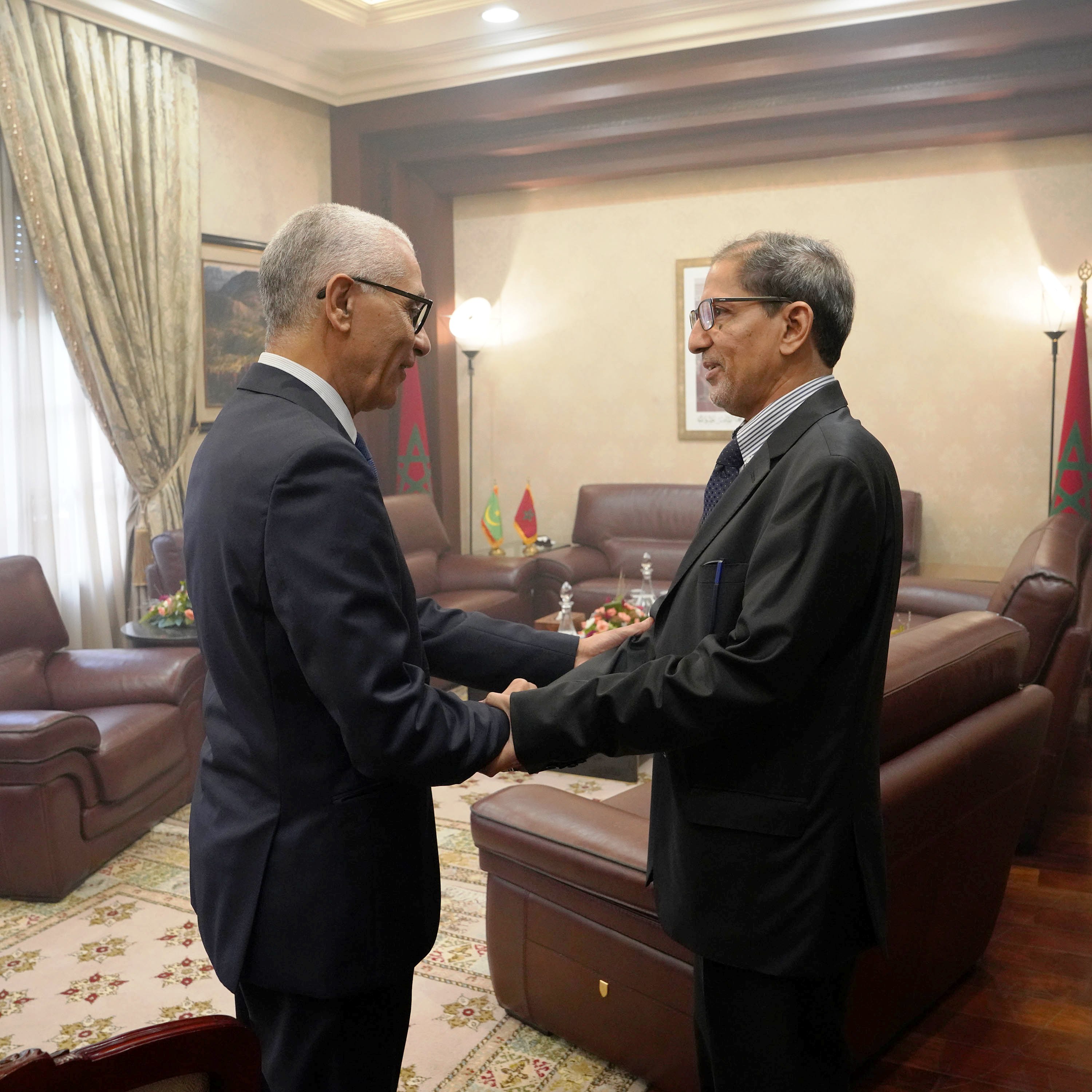 بمقر مجلس النواب،استقبل راشيد الطالبي العلمي،رئيس المجلس اليوم الأربعاء 21 شتنبر الحالي، محمد ولد حناني سفير الجمهورية الإسلامية الموريتانية بالرباط .