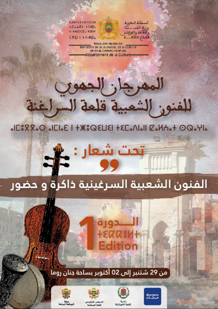 ينظم قطاع الثقافة لوزارة الشباب والثقافة والتواصل الدورة الأولى للمهرجان الجهوي للفنون الشعبية قلعة السراغنة تحت شعار ” الفنون الشعبية السرغينية ذاكرة وحضور” من 29 شتنبر الحالي إلى 2 أكتوبر المقبل بمدينة قلعة السراغنة.