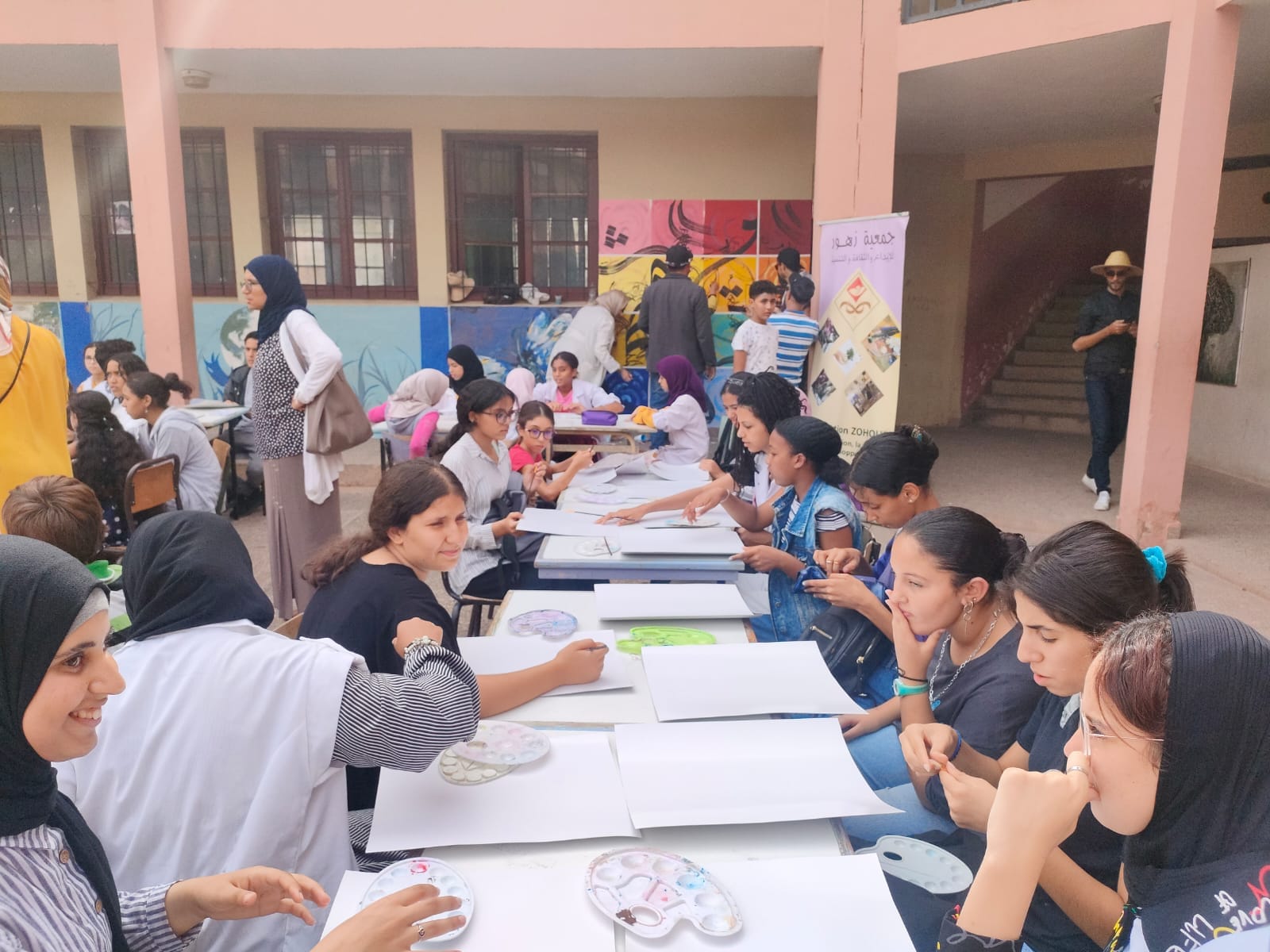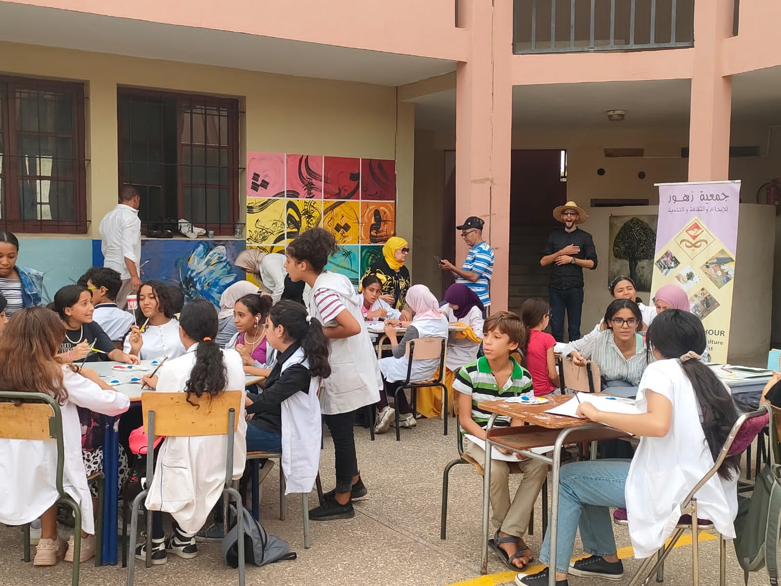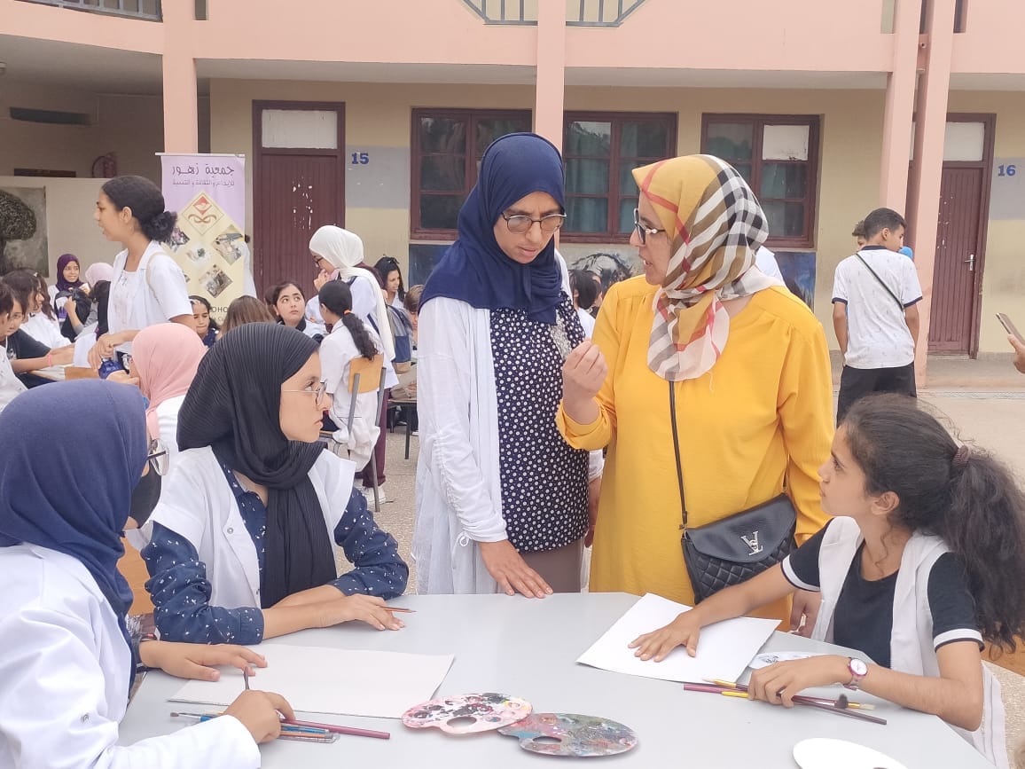 إلى ذلكــ ، أوضحت الفنانة التشكيلية زهراء الحنصالي، رئيسة جمعية زهور للإبداع والثقافة والتنمية، أن حضورها وحضور زملائها وزميلاتها فيما وصفته بالعرس الفني التربوي، يستهدف فتح آفاق التناغم أمام تلاميذ مع الفن التشكيلي بكل مكوناتها المضمونية والشكيلية من جهة، ومع المحيط الخارجي الثقافي والإبداعي ومتطلبات العمل الفني المعاصر.