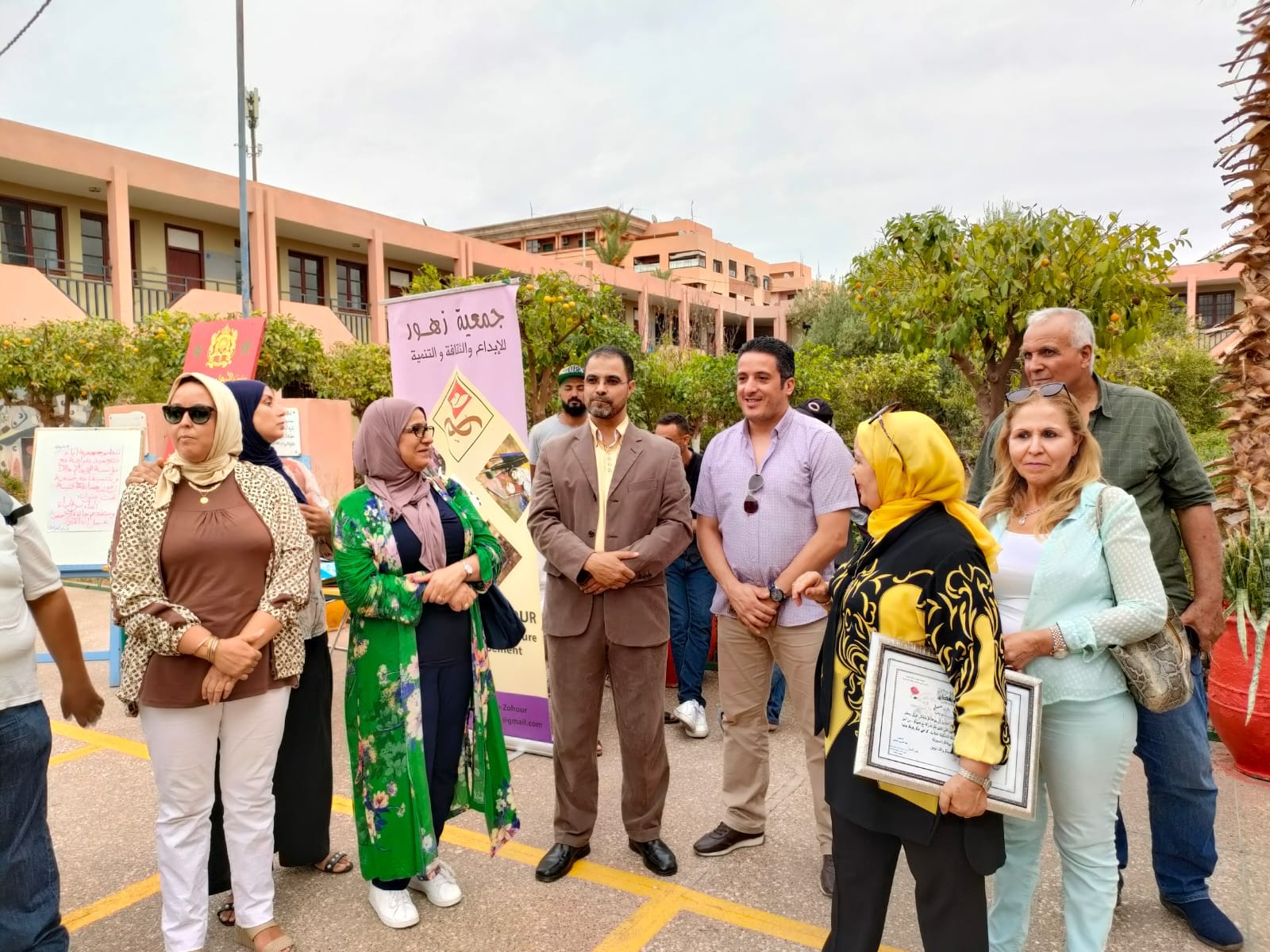 تحت شعار “الفنون التشكيلية تنمية لذوق وإبداع الناشئة وزينة بالفضاء التعليمي” نظمت جمعية أمهات وأباء وأولياء ثانوية الإمام مالك الإعدادية بمراكش بتنسيق مع إدارة المؤسسة، وجمعية زهور للإبداع والثقافة والتنمية، أمس السبت 24 شتنبر الحالي، يوما تربويا تشكيليا لفائدة تلاميذ وتلميذات المؤسسة المذكورة، حضره مدير المؤسسة وأطرها الإدارية ومجموعة من الأستاذات والأساتذة بذات المؤسسة، وممثلة عن المدير الإقليمي لوزارة التربية الوطنية والتعليم الأولي والرياضة، وممثلة عن مدير الأكاديمية الجهوية للتربية والتكوين لجهة مراكش آسفي، ورئيس مجلس مقاطعة جليز، ونائب عمدة مدينة مراكش،والعديد من الفنانين والفنانات التشكيليات وممثلي وسائل الإعلام الجهوية والوطنية، وفعاليات المجتمع المدني ذات العلاقة بالشأن التربوي، بالإضافة إلى العديد من المنتمين للأوساط الفنية التعبيرية والتشكيلية.