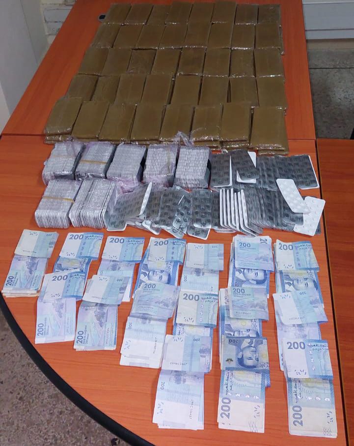 هذا، وجرى إعتقال المشتبه فيه الرئيسي مباشرة بعد وصوله على متن سيارة خفيفة إلى مدخل مدينة مراكش، قبل أن تمكن عملية التفتيش المنجزة على متن هذه السيارة من حجز 5.400 قرص طبي مخدر من نوع “Rivotril”، فضلا عن حجز 7 كيلوغرامات و905 غرام من صفائح مخدر الشيرا المعدة للترويج.
