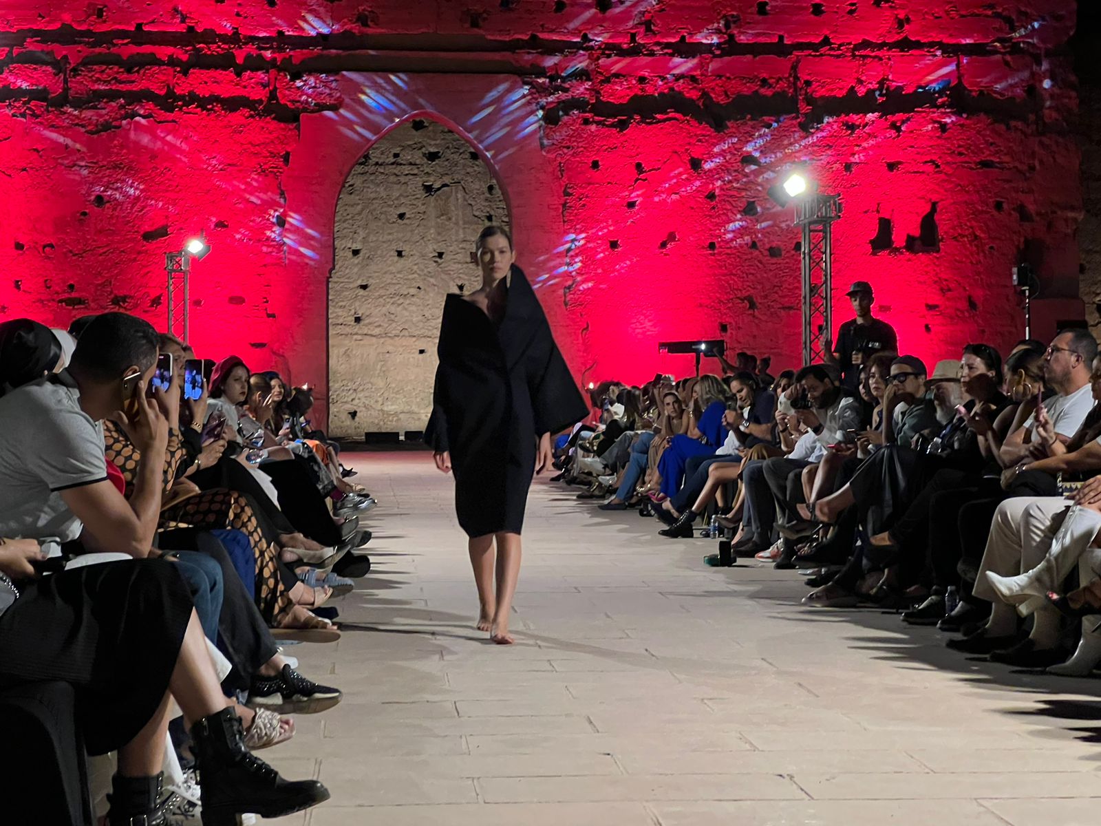 بتصاميم باذخة تختزل مختلف إشعاعات الثقافة المغربية والثقافات الإفريقية والعالمية تدور عارضات الأزياء الحسناوات، ضمن أسبوع الموضة في مراكش MFW ،و والذي نظم في مراكش بالفترة ما بين 25 إلى 28 أكتوبر 2022 ، بكل ما تحويه الأناقة من معانى التفرد والتميز، على الأنغام الدافئة لنوتات الموسيقى الذي تحملها، وتجول بها أسوار قصر البديع التاريخي بمراكش،وكأن ردهات وقاعات وأطلال القصر الأثري المذكور،الشاهدة عن عظمة الحضارة المغربية، تتفاعل مع العارضات في لوحة استعراضية فريدة تجمع بين إبداعية التصاميم وأبهة المكان واستثنائية الزمن، زمن أزياء مراكش فاشيون وويك ،MARRAKECH FASHION WEEK ، حيث عملت رئيسة جمعية مراكش فاشيون وويك MARRAKECH FASHION WEEK والخبيرة الدولية في الأزياء ماري بوكارت Marie BOGAERT. ، مع شركائها على إستحضار ثلة من مصممات ومصممي الأزياء من جنسيات مختلفة ومن ذوي الصيت الشاسع في المضمار على غرار المصمم النيجيري الفادي Alphadi وطوم ريبل Tom Rebl وقمر النهار Lune de jour وروميو كوتيغ Romeo couture وأصيلة Aseela وجان كلود بن إيلي Jean Claude Benielli ورانا ريزابور Rana Rezapour ونيل كرياسيون Nel Création وديان كاندميل Dayan Candamil،ممن قدموا أمام الجمهور في مراكش، آخر إبداعاتهم ضمن مجموعات متناسقة ومتكاملة على خشبات وممرات المعاينة، في إطار هندسة ضوئية متجاوبة مع العروض، ومعزوفات موسيقية وفي إنسجام تام بين التصاميم والمقطوعات الغنائية .
