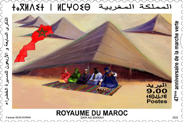 أعلنت مجموعة بريد المغرب عن إصدار طابع بريدي خاص بمناسبة الذكرى السابعة والأربعين للمسيرة الخضراء المجيدة، يبرز أحد جوانب التراث اللامادي للأقاليم الجنوبية للمملكة.