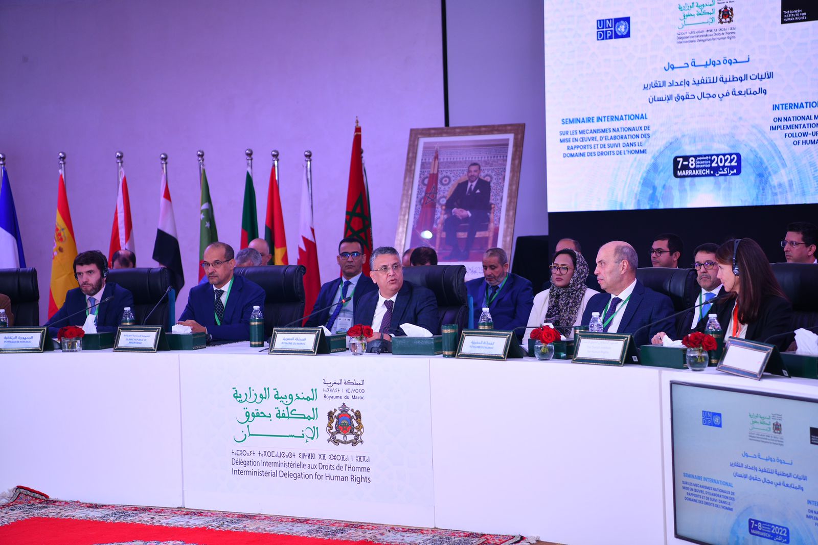 وخلال افتتاح الندوة،سجل المندوب الوزاري المكلف بحقوق الإنسان ، تثمينه لإفتتاح هذه الندوة الدولية من قبل عبد اللطيف وهبي، وزير العدل، المكلف بالسياسة الحكومية في مجال حقوق الإنسان، وحضور مختلف المشاركين والمشاركات من ضيوف المملكة المغربية، معتبرا، أن انعقاد هذه الندوة يشكل حدثا هاما من منظور سياسة حقوق الإنسان بالنسبة للآليات الوطنية للتنفيذ وإعداد التقارير والمتابعة”.
