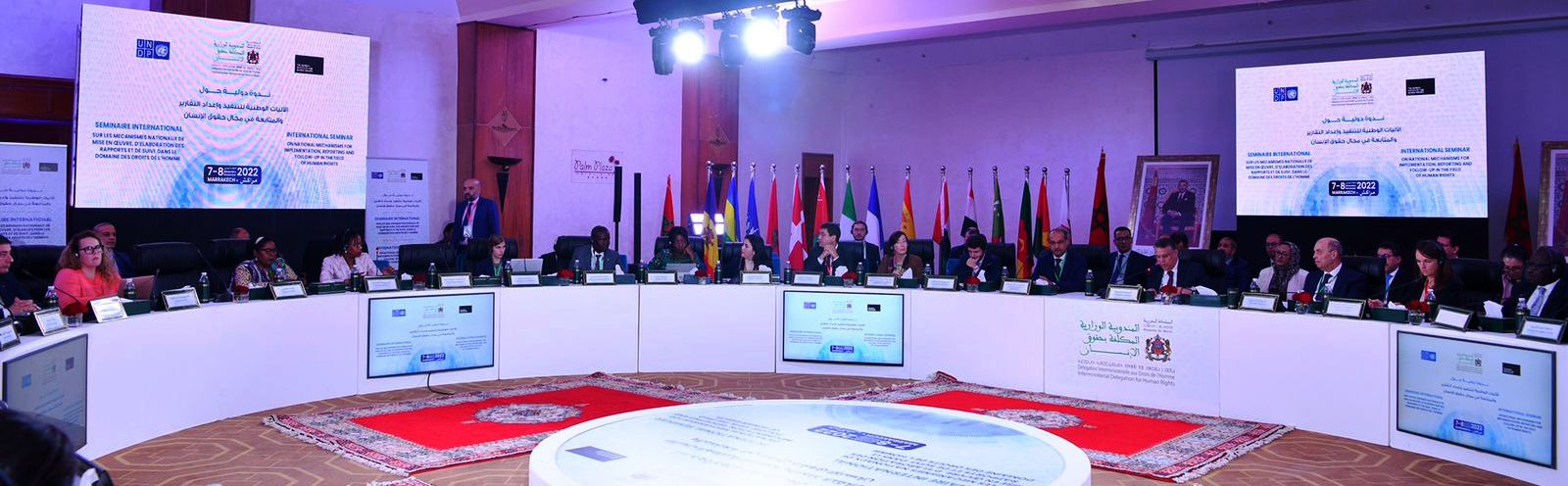 إلى ذلكــ ، وإدراكا من المندوبية الوزارية لقيمة هذا اللقاء بمراكش على تراب المملكة،، فقد تم تشكيل وفد وطني مكون من ممثلين عن المندوبية وباقي أطراف التنسيق المؤسساتي الذي يشكل في التجربة المغربية العمق الاستراتيجي للآلية الوطنية للتنفيذ وإعداد التقارير والمتابعة، انطلاقا من كونها فضاء للتنسيق يتشكل من القطاعات الحكومية المعنية والمؤسسات الأمنية ورئاسة النيابة العامة والمندوبية العامة للإدارة السجون وإعادة الادماج، وكل سلطة عمومية أخرى يقتضي الأمر حضورها، وباعتبارها الآلية المكلفة بالإعداد لكل العمليات المتعلقة بتفعيل أجزاء هامة من السياسة الوطنية في مجال حقوق الإنسان التي يبقى التنسيق المؤسساتي، الذي يقارب اليوم عقده الأول في التجربة الوطنية، آليتها الرئيسية. وإرتباطا بأشغال الندوة، فقد قدم أعضاء الوفد المغربي المشارك في الورشات، مختلف خلاصات التجربة المغربية والعمل التنسيقي الوطني الذي يعكس الإرادة العليا للدولة في المجال، انطلاقا من التزامات المملكة المغربية بموجب القانون الدولي لحقوق الإنسان،وباعتبار أن هذه الالتزامات الدولية تبقى شأنا سياديا للدول عبر العالم، يمارسه كل نظام دستوري وفق قواعد وأسس قانونية وسياسية وآليات مؤسساتية مختصة.