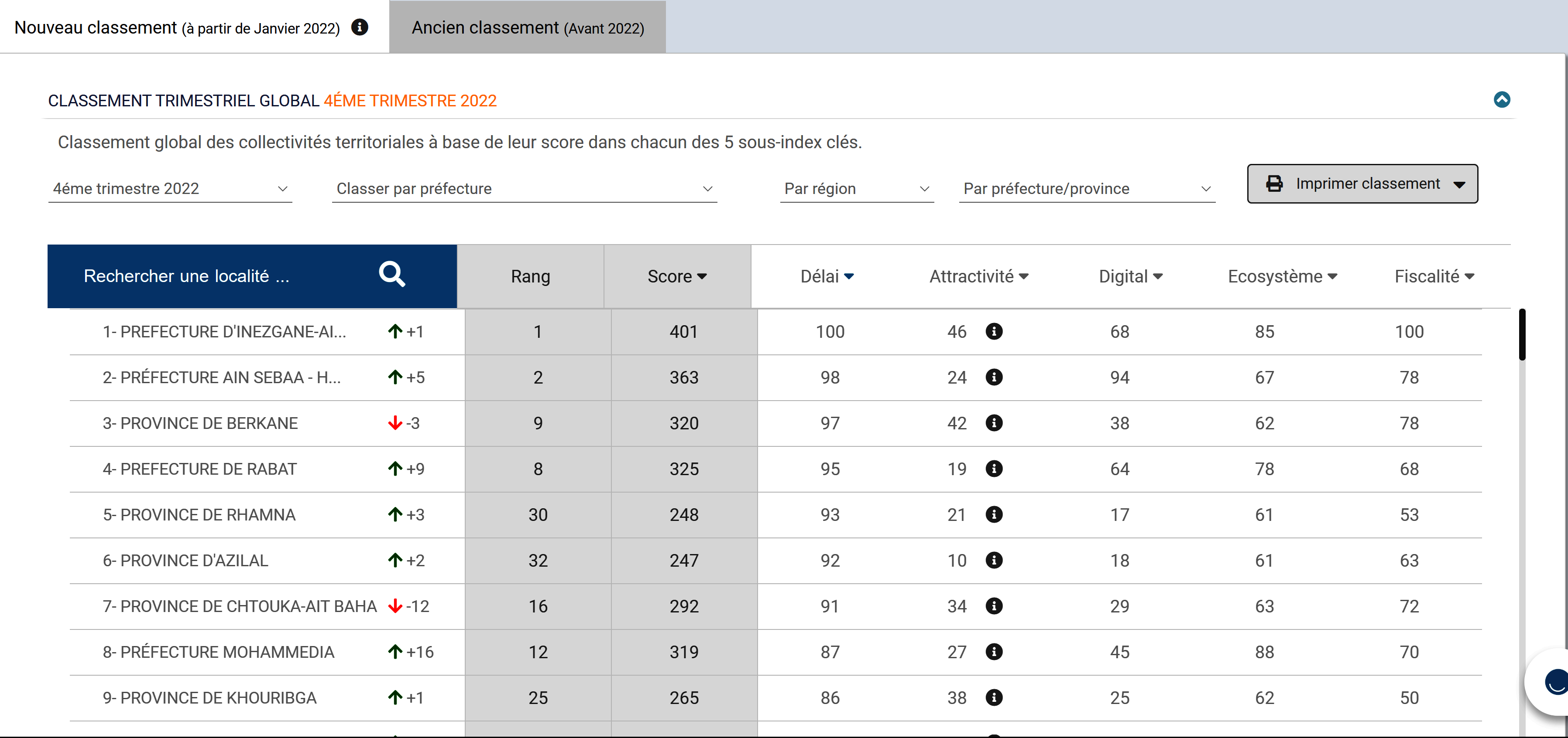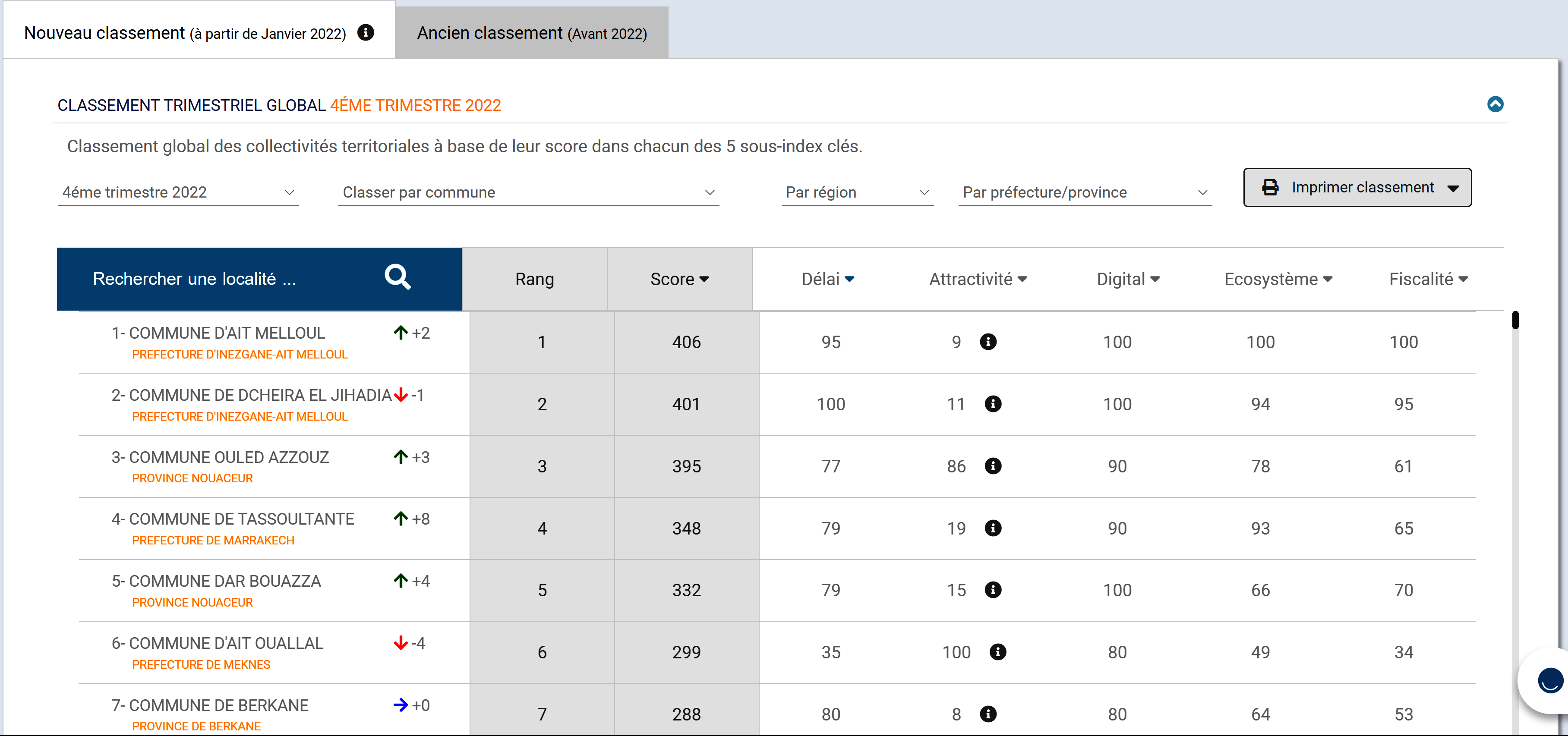 هذا، وحافظت عمالة إنزكان أيت ملول على المرتبة الأولى وطنيا على مستوى العمالات، وجهة سوس ماسة على مكانتها الرائدة التي احتلتها طوال عام 2022 على المستوى الوطني.