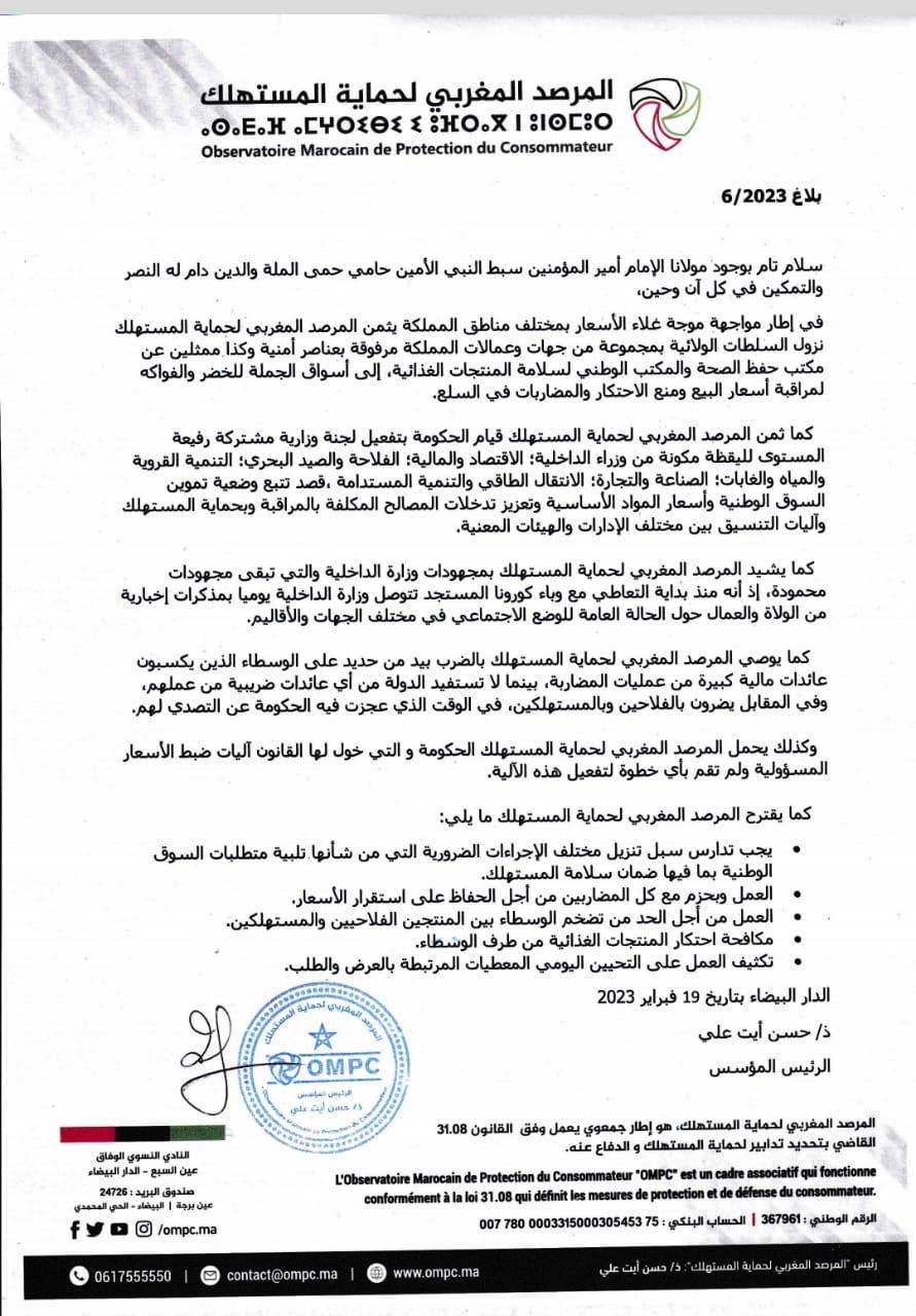 كما يوصي ذات المرصد بأن عملية استيراد العجول الموجهة للذبح يجب أن تمر في ظروف جيدة تبعا للشروط الصحية المسطرة من قبل المكتب الوطني للسلامة الصحية للمنتجات الغذائية، مؤكدا، على أنه وبعد كل عملية استيراد يجب تعقيم الشاحنات التي تحمل الأبقار قبل التأشير لها بدخول التراب الوطني.