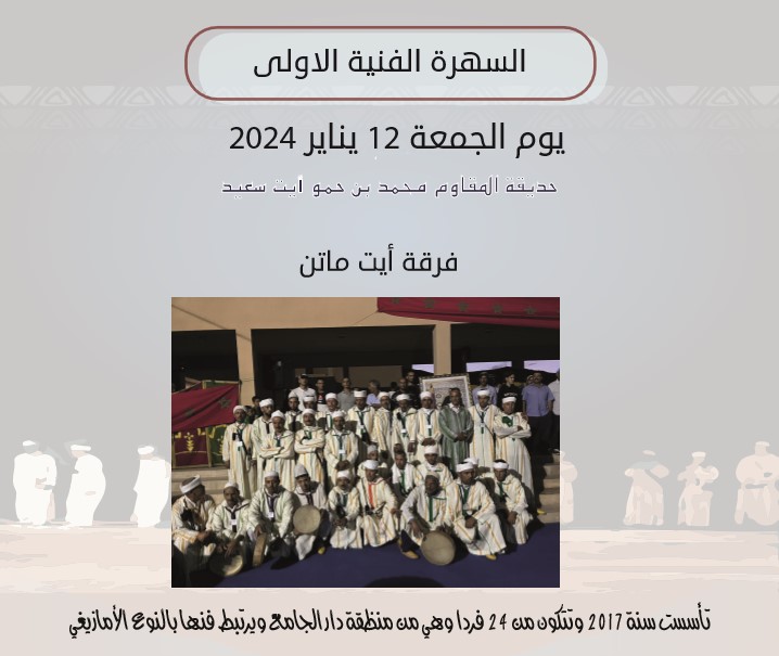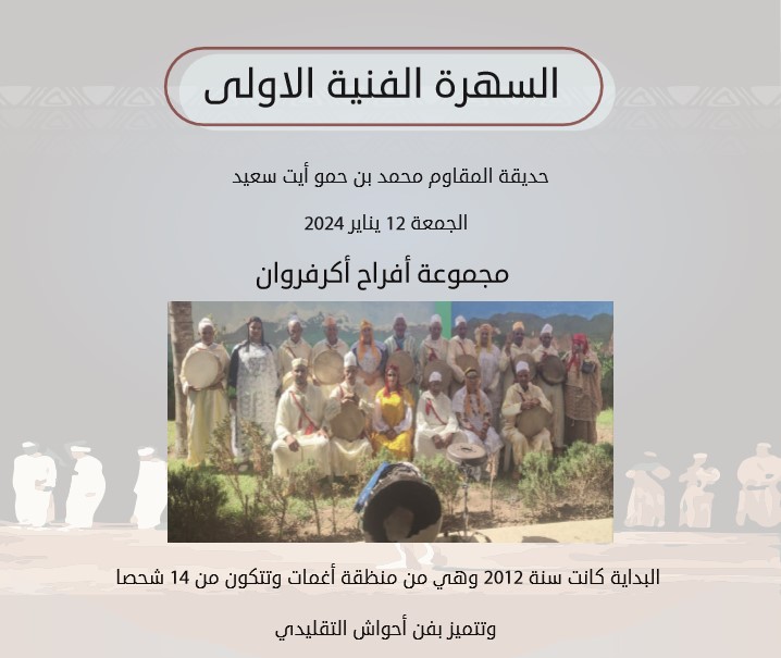 وحسب المنظمين، من خلال بلاغ صحافي توصلت به “هاسبريس” فإن دورة المهرجان المذكور، جاءت ترسيخا للتوجهات الكبرى لوزارة الشباب والثقافة والتواصل الرامية إلى حماية الموروث الفني الوطني، وتثمين ما يزخر به من مقومات تراثية أصيلة تنهل من نبع الهوية المغربية العريقة، ومن روافدها الحضارية الأمازيغية الممتدة، حيث عرفت الدورة الافتتاحية مشاركة 19 فرقة تراثية تمثل مختلف الألوان الفنية التراثية والفنون المشهدية الأمازيغية محليا ووطنيا إلى جانب سهرات فنية يحييها ثلة من نجوم الأغنية الأمازيغية، إلى جانب معرض للفنون التشكيلية ومعرض ثان حول اللباس التقليدي،بالإضافة إلى معرض ثالث حول الكتاب الأمازيغي يروم التعريف بأهم الإصدارات الناطقة بالأمازيغية وأهم ما تم تحقيقه في هذا المجال.