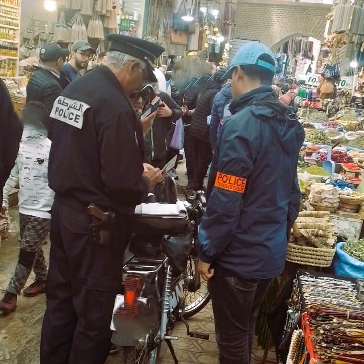في اطار تنزيل استراتيجية المديرية العامة للأمن الوطني بخصوص تعزيز الاحساس بالأمن و خصوصا في البعد المتعلق بالامن السياحي، والمرتبط بالأعداد المهمة للسياح المتوافدة على المدينة، وفي أفق تجسيد و تفعيل تعليمات القيادة الولائية لمراكش، قامت المنطقة الخامسة لمراكش المدينة العتيقة تحت الاشراف الفعلي لرئيسها و بمساهمة عناصر الهيئة الحضرية ورئيسها، بعمل أمني واسع النطاق على مستوى ساحة جامع الفنا و الاسواق المحيطة بها على غرار سوق الجديد،وسوق البهجة وأسواق السمارين،وباب الفتوح، والمواسين، وحي القصور، ومنطقة الرحبة القديمة،وحومة سيدي اسحاق،وحومة أمصفح،وحي الباروديين،وحومة سيدي عبد العزيز،وسويقة رياض العروس، وطوالة دار الباشا، وطريق لكزا، والرميلة وغيرها، حيث كانت عناصر أمن الهيئة الحضرية مؤازة بدورية اسواق المدينة العتيقة،و عناصر النجدة بالإضافة إلى استعانتها بمقطورة الشحن،قبل أن يتم تسجيل :