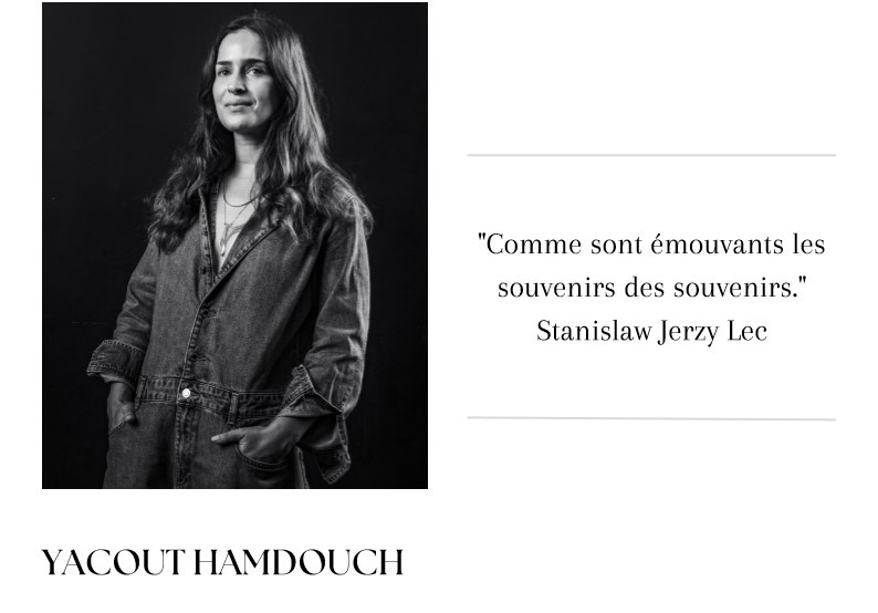 وللإشارة، قد ولدت ياقوت حمدوش عام 1994 بالدار البيضاء، وتدربت في الفن في أكاديمية الفنون الجميلة في ميلانو إلى جانب معلمها الفنان الإيطالي نيكولا سلفاتوري،وأتقنت العودة إلى ذكرياتها وأسفارها حول العالم، إيمانا منها بأن الذكريات مؤثرة، ولكن ذكريات الذكرياتـ أكثر تأثيرا كما يقول ستانيسلاف جيرزي ليك، كما تسعى ياقوت إلى الحفاظ على تجاربها وذكرياتها وأفكارها وعواطفها من خلال الرسم، وإستثمار عمق ثقافتها التشكيلية وإيمانها برؤاها العميقة لعنصر النار.