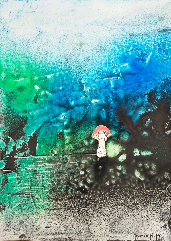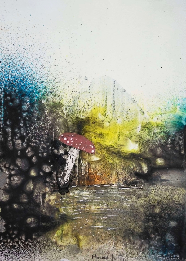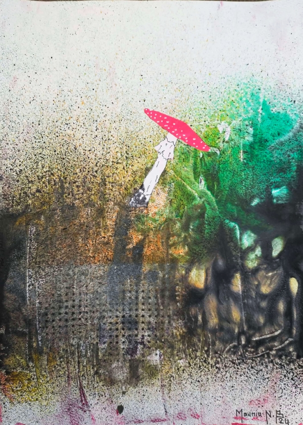 وعلى كل حال، فإن تمَثُّلات الفِطر في لوحات معرض”تحت القبّعة” Sous le Chapeau، للفنانة التشكيلية المغربية مونيا بوطالب، تضع الجمهور من المشاهدين والمتأملين لها، في بوثقة إكتشاف أثر هذه الجائحة على ذات الفنانة، وعلى الواقع الإنساني ككل، حيث أن الفنانة بوطالب جزء متفاعل مع هذا الواقع، تتخذ من الرمزية والتعبير الدلالي باللون والطيف موقعا أساسيا في جل أعمالها الفنية بهذا المعرض، الذي يجسد أحداث وتداعيات زمن كورونا، بإقتدار ومهنية، وبواقعية وصدق، مستندة في أعمالها على طبيعة المكان وأهمية الزمن، وقوة الجائحة لتوثيق المعالم الأساسية لها، بلغة التشكيل والفكر التشكيلي، وليكون مرجعية دلالية في المستقبل للمجتمع، ولتاريخ الفن المعاصر بالمغرب، بلوحات على الورق مدروسة المساحات والمواد والقيم وتفاوتات الظل والنور، وبفنية يجدها المتلقي غاية في الروعة والتفرد البصري.