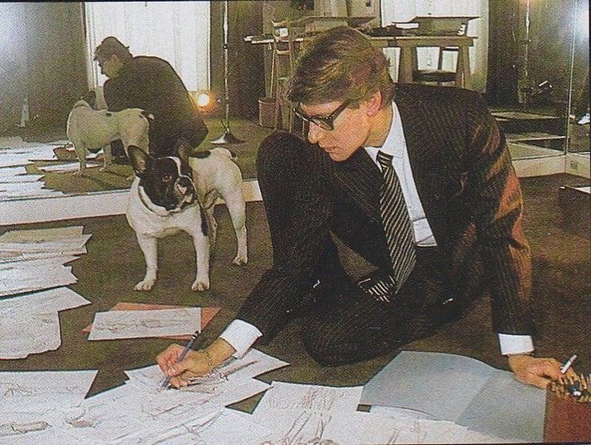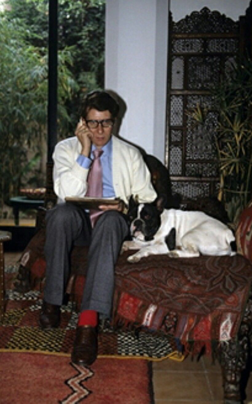 ففي فضاءاته الإبداعية ومكتبه الهادئ الذي تكتنفه رائحة الأقمشة، وتنوع التصاميم، كان يجلس إيف سان لوران بجانب كلبه. الذي لا يتكلم، لا يوجه، لكنه يسجل حضورا قويا.