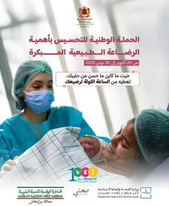 تُعلن اللجنة الإقليمية للتنمية البشرية لعمالة مراكش عن انطلاق فعاليات الحملة الوطنية للتحسيس بأهمية الرضاعة الطبيعية المبكرة، وذلك ابتداءً من 20 أكتوبر الجاري إلى غاية 20 نونبر المقبل 2025، وذلكـــ بشراكة مع المندوبية الإقليمية للصحة والحماية الاجتماعية وبتعاون مع مختلف المصالح القطاعية والفاعلين في مجال صحة الأم والطفل، قصد توعية الأمهات بأهمية إرضاع الطفل في الساعات الأولى بعد الولادة، لما لهذه الخطوة من فوائد صحية وغذائية تعزز نمو الرضيع، وتقوي مناعته، وتُسهم في بناء علاقة عاطفية متينة بين الأم ورضيعها.
