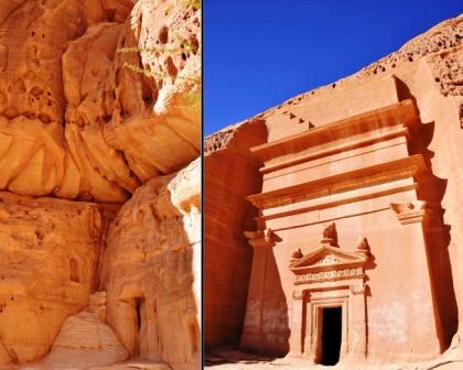 وتضم آثار مدائن صالح 153 واجهة صخرية عملاقة منحوتة، كما تضم عدداً من الآثار الحديثة الإسلامية والتي تتمثل في عدد من القلاع وبقايا خط سكة حديد الحجاز والتي تمتد لمسافة 13 كليومتر، وبقايا المحطة والقاطرات. لدرجة أنه في سنة 2008 تم تسجيل الموقع ضمن قائمة مواقع التراث العالمي، ليصبح بذلك أول موقع يتم تسجيله في العربية السعودية. كما يوجد موقع أثري آخر يعرف بمدائن شعيب وهي “مدين” الوارد ، نسبة إلى النبي شعيب عليه السلام ، وهو بدوره نبيا عربيا ورد ذكره في القرآن الكريم ،أرسله الله إلى شعب مدين الوارد ذكرهم في القرآن الكريم وفي الكتب القديمة ، تحت إشارة “أصحاب الأيكة” وتقع مدين شمال غرب مدائن صالح بمنطقة تبوكـ ، حيث لاتزال تحتوي على مواقع أثرية تشبه تلك الآثار المتواجدة بمدينة البتراء في بادية الأردن .